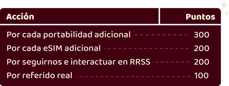 Este mes de febrero, al superar tu meta de enero en ventas de eSIM y portabilidades, sumas puntos por cada venta adicional.